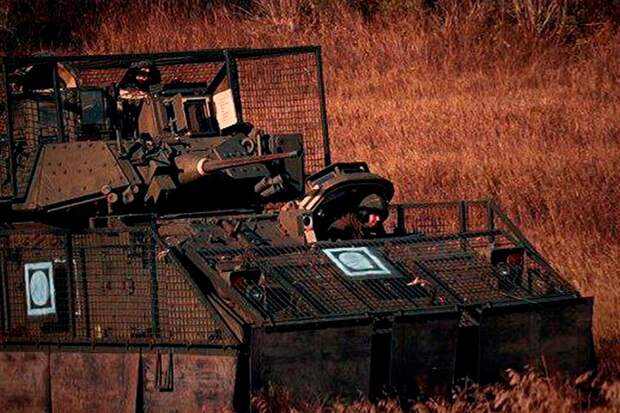 Вместо нее боевики оборудовали заокеанские БМП решетчатыми экранами, при этом соорудив практически касающиеся земли фальшборта. Однако передняя часть башни осталась открытой, и дроны-камикадзе могут поражать их без особых проблем. Интересно, что это вражеское соединение также эксплуатирует германские Marder 1A3, а выбитые танки Т-80БВ были заменены на Leopard 1A5, которые используются очень редко.
