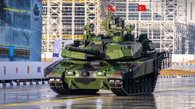 При этом машина в своё время потенциально претендовала на звание одного из лучших современных танков. Что в итоге получилось у турок? Современный ли это танк? Аутентичная разработка или подражание натовским машинам? Есть ли смысл в таком танке, когда СВО на Украине сильно изменила портрет современной войны? Краткое описание В целом выделить какие-то особенности и специфику у танка Алтай трудно — довольно обычный, на первый взгляд, современный танк, напичканный, чем положено. В первую очередь, это связано с тем, что Турция — член НАТО и, конечно, танк создавали с оглядкой на эти стандарты. В то же самое время турки держатся в коалиции несколько особняком, имеют суверенный ВПК и сотрудничают в военной сфере с не членами альянса, а, например, с Китаем, Южной Кореей и Россией. Общая масса танка — 65 тонн, что довольно характерно для современных танков. Предсказуемо это композитная броня, сочетающая особые сплавы бронированной стали. Они подобно сэндвичу внутри содержат композитные материалы (их состав обычно — военная тайна), за счёт физических свойств снижают проникновение кумулятивных струй или бронебойных подкалиберных снарядов. У современных танков это толстые и сложные системы с огромной массой, но, с другой стороны, они обеспечивают высокую стойкость к традиционным средствам поражения. Кроме основной брони предусмотрены модульные пакеты дополнительной брони, которыми можно усиливать различные проекции танков. Как и положено, пассивная защита дополнена активными системами, но и тут ничего особенно нового. Турецкие разработчики в основном вдохновлялись корейским танком К2 Черная Пантера, но, по их словам, бронезащита турецкой машины толще. Система активной защиты предполагает сведённые в единую среду данные с датчиков и камер, способных определить, что машина облучена лазерными системами наведения и находится под угрозой. Собственный КАЗ (комплекс активной защиты) аналогичен другим моделям — собственная РЛС способна рассчитывать траектории летящих в танк противотанковых ракет и может противостоять им как выпущенной противоракетой, так и отстрелом в сторону модуля реактивной брони, по типу российского комплекса Афганит. Кроме этого, в комплекс защиты входит система охлаждения выхлопа и поговаривают о мультиспектральном камуфляже, что позволит почти полностью скрыть тепловую сигнатуру танка — а значит, усложнит захват системами наведения противника. Орудие 120 мм в 55 калибров длины — под стандартную номенклатуру выстрелов НАТО. Само орудие — турецкая версия корейского орудия Hyundai Wia CN08 танка K2 Черная Пантера, которая, в свою очередь, развитие стандартной натовской пушки Rh-120. Однако в отличие от корейского танка, где есть автомат заряжания, турки предпочли оставить заряжающего в экипаже. Подрядчик проекта, компания Aselsan предоставила систему управления огнём Волкан-3, в которую входят оптика, тепловизоры, датчики и системы обмена данными. Под влиянием корейцев Алтай также, видимо, получит гидропневматическую подвеску, позволяющую наклонять танк и расширять зону огневого контроля по вертикали — особо ценная опция для войны в горной местности. Двигатель Силовая установка была основной головной болью — машина получалась очень тяжёлой, как и положено современным танкам, при этом двигатель должен был давать высоки